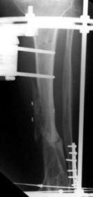 slider units. The pilon fracture was reduced with olive wires. Union